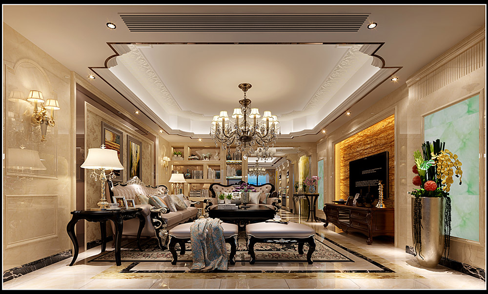 欧式风格室内装修效果图-龙光玖珑湖三居136平米